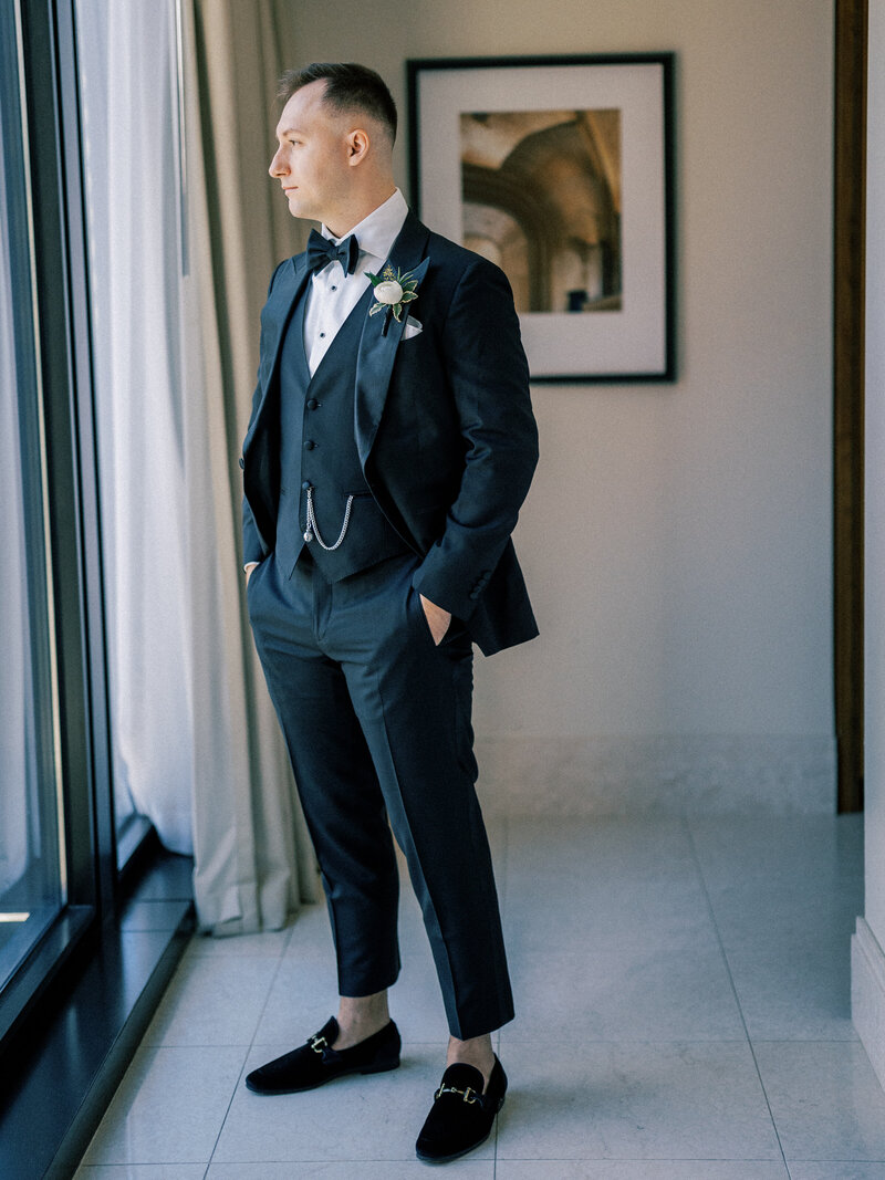If the groom wants individuals with each of his guys, I just need one vertical, full body individual. Make sure to not cut off any toes. Ideally at 2.8. And if you have time to grab a detail of the boutonniere, amazing!