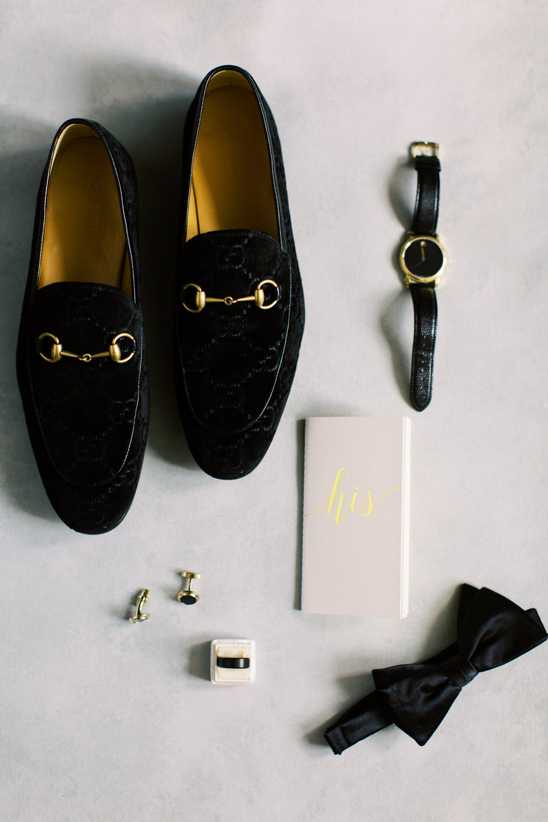 I love details! My grooms will have their details set aside for you to shoot when you arrive — shoes, bowtie, cuff links, cologne, watch, vow book, boutonniere, wedding band, etc. If you have a neutral styling mat you can bring with, amazing! Otherwise look for a clean neutral surface (or chair) and bring it by a window. It’d be great if you could stylize a few different set ups of the details all together and then a few details separate, like the shoes, cologne, + boutonniere.